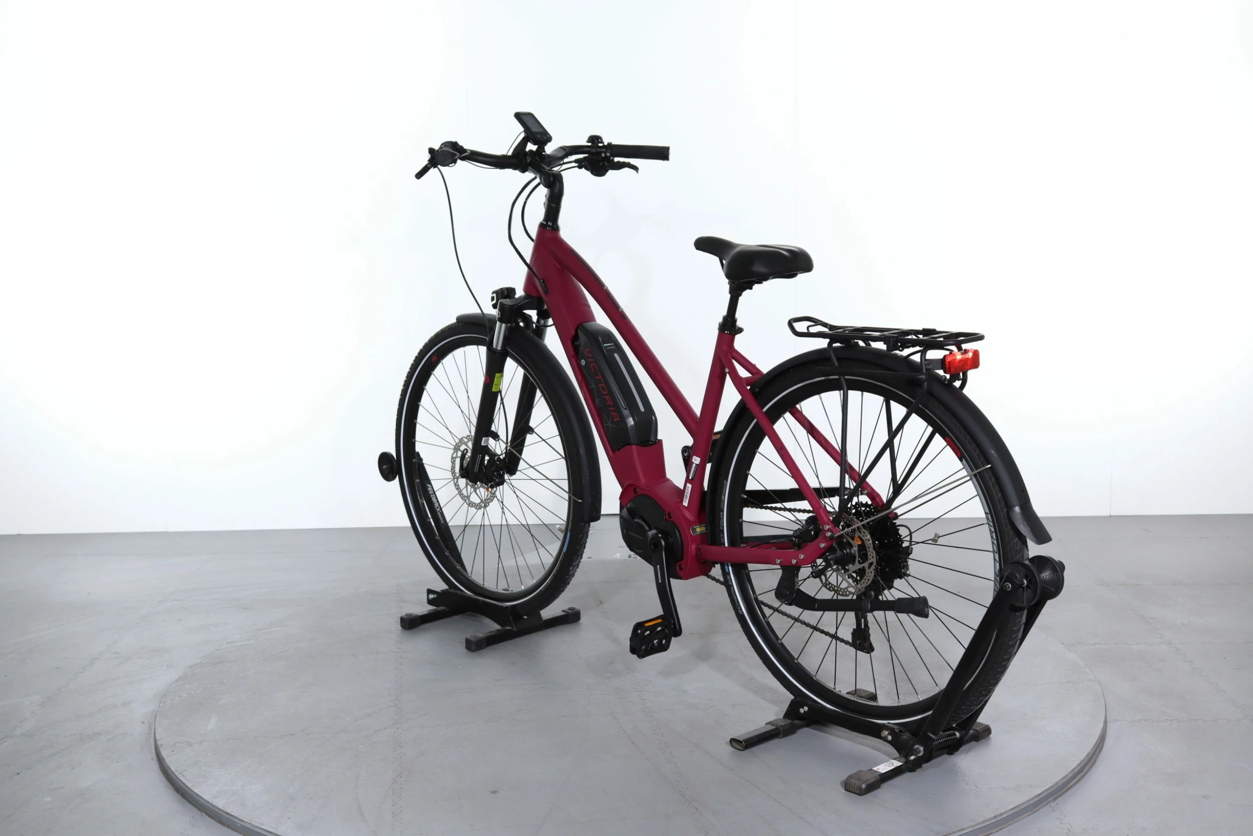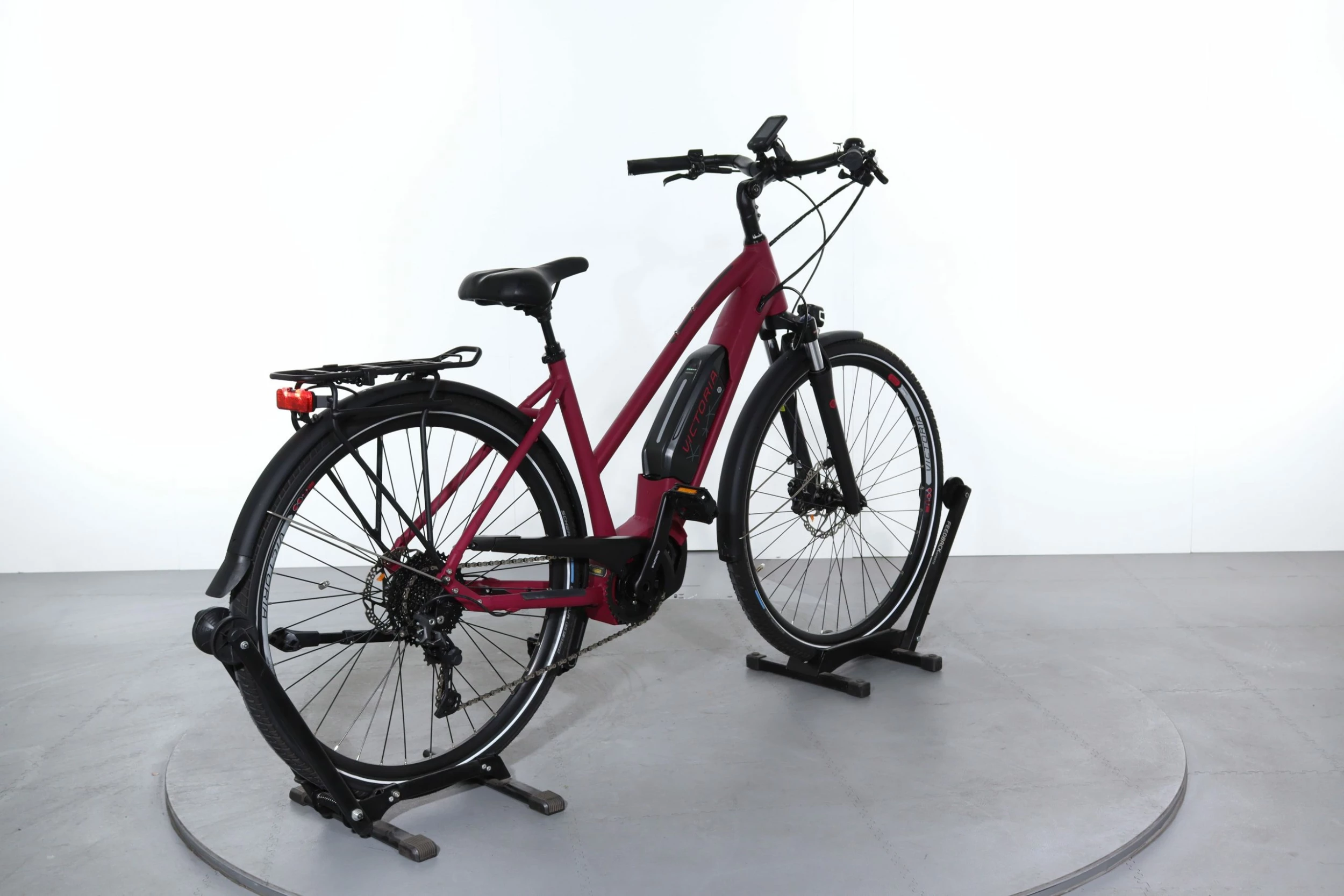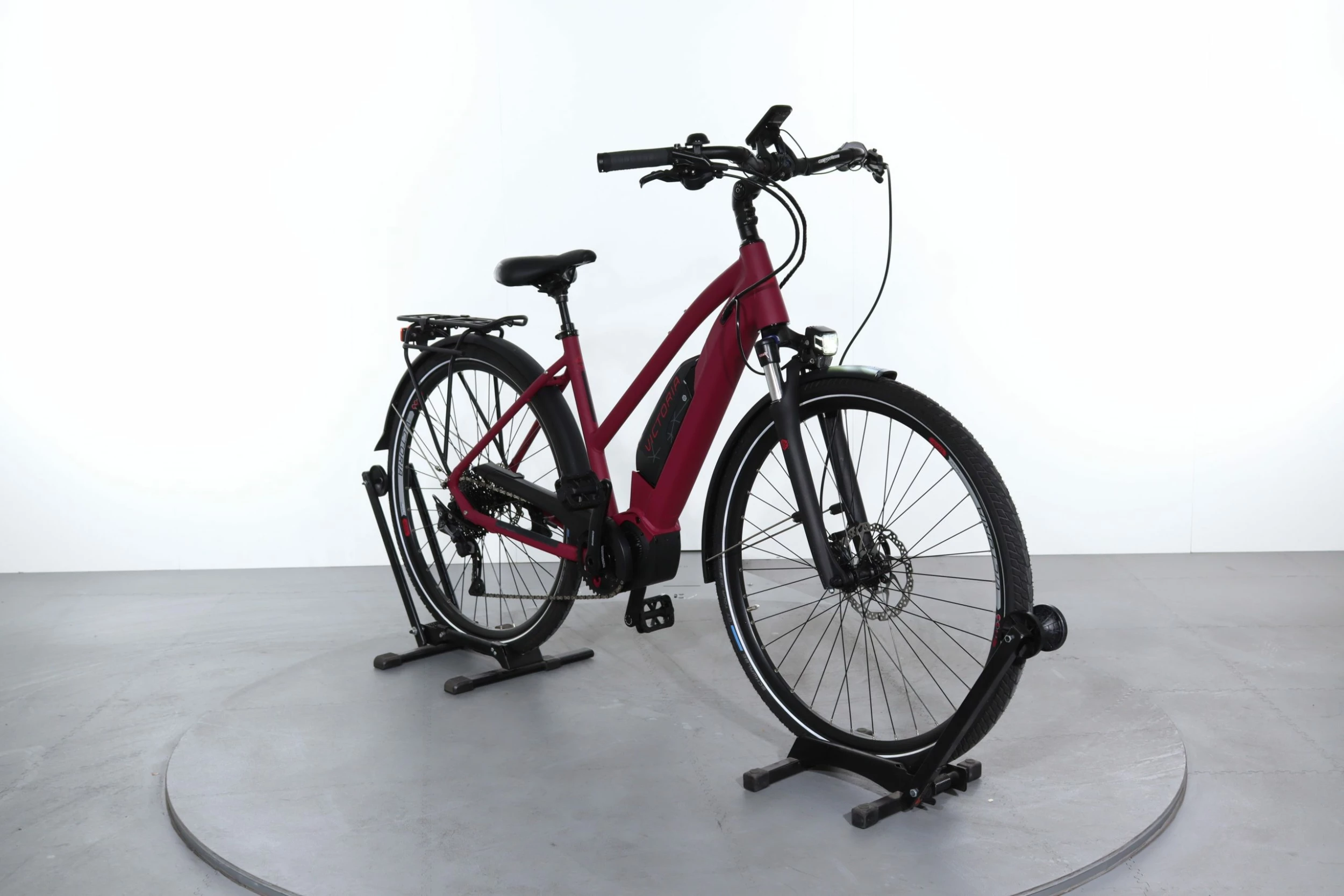 VĂ©lo Ă©lectrique urbain par excellence, ce Victoria e-Touring 8.8 associe confort et rapiditĂ©. Sa batterie offre un maximum d’autonomie, tandis que ses accessoires utiles comme le porte-bagages ou le garde-boue vous simplifieront la vie lors de dĂ©placements urbains ou de randonnĂ©es.